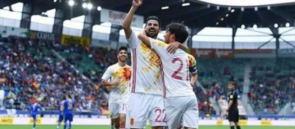Spanyol : Casillas, Bartra, San Jose, Jordi Alba, Juanfran, De Marcos, Fabregas, Santi Cazorla, Pedro, Diego Costa, Alvaro Morata